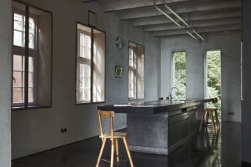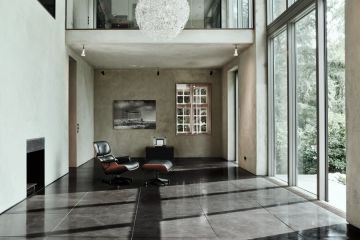 Die richtige Fliese macht den Raum erst zum Wohnraum, gibt ihm Charakter und Atmosphäre. In dieser Luxusvilla verbindet sich historischer Glanz mit modernem Komfort. Für den Boden wurden Betonwerk-Fliesen verarbeitet, die Wände ziert graues Steingut - alle Fliesen sind handgefertigt.